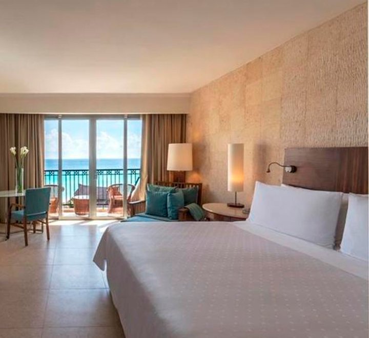 - Ocean View: cama King Size o 2 matrimoniales, cuyo muro de cabecera está hecho con conchuela, piedra natural típica de la región, así como de la ropa de cama 100% algodón de 300 hilos y 3 tipos de almohadas (pluma, densidad soft y densidad media) que invitan a descubrir una nueva manera de soñar. También cuenta con lámpara de lectura, confortables muebles de madera, baño con tina y rain shower, sistema de automatización de aire acondicionado e iluminación, chapas con lectores de proximidad, caja de seguridad, cafetera, mini bar, Smart TV de 55” y acceso a internet. Si quieres más belleza, admira una hermosa vista parcial al mar. Y para seguridad, nuestra cancelería es resistente a huracanes categoría 4. Espacio 100% libre de humo